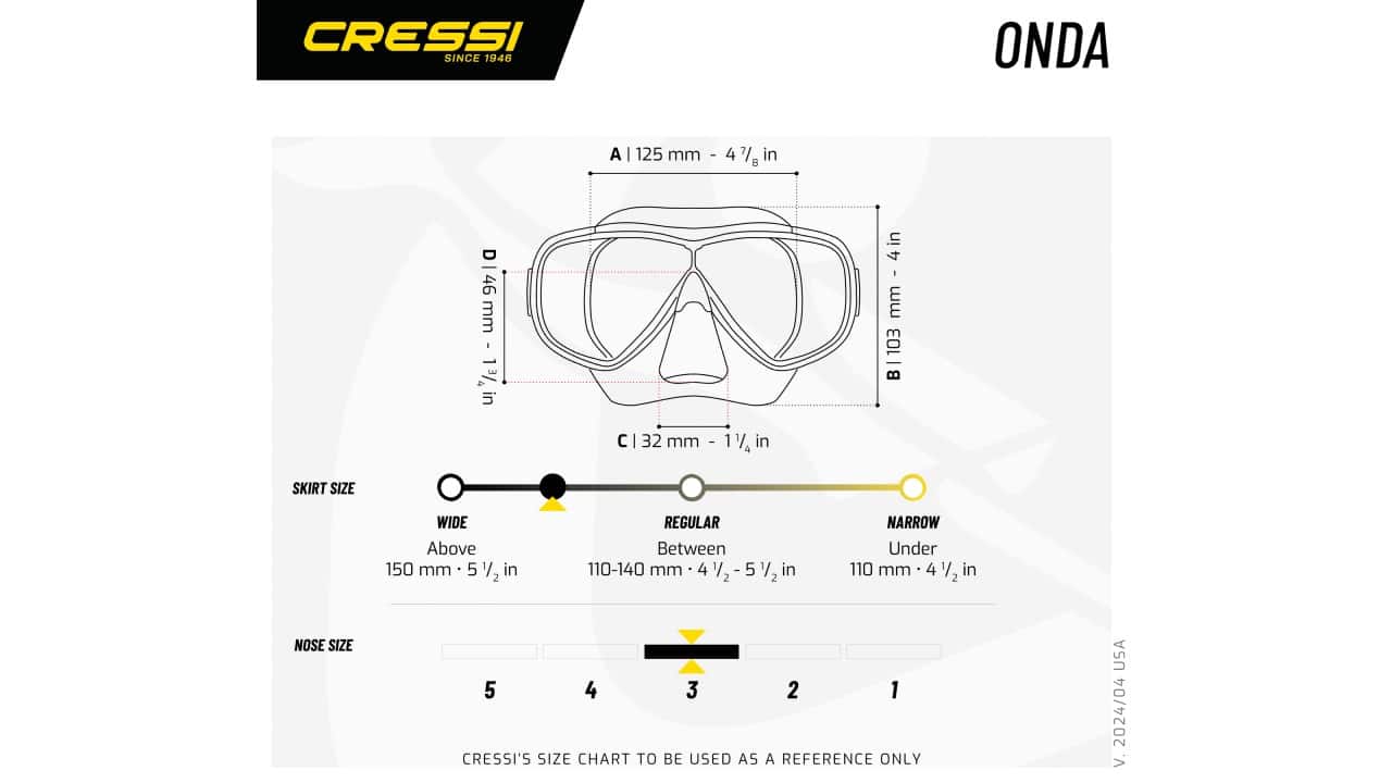 Le masque Onda, dotée d'un seul écran en verre trempé, est conçue pour la plongée avec tuba et la plongée sous-marine